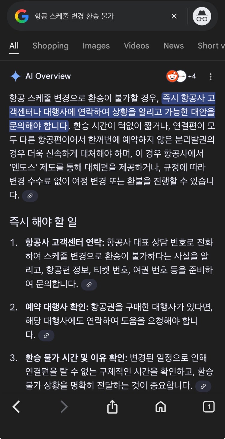 2025년 5월 21일 트립닷컴 이용해서 표 구입했습니다. (일단 호주에 살고 있어서 스카이스캐너 검색 후 트립닷컴 이용해서 구입) 오리지널 일정은, 2026년 1월 5일 시드니 10:30 - 2026년 1월 5일 서울/인천 19:002026년 1월 19일 서울/인천 09:10 - 2026년 1월 19일 삿포로 11:40 2026년 1월 23일 삿포로 13:10 - 2026년 1월 23일 서울/인천 16:00 transit to connecting flight 2026년 1월 23일 서울/인천 20:00 - 2026년 1월 24일 시드니 08:30 이였습니다.9월 30일 스케줄 변경이 됐다고 먼저 연락이 왔고, 첫번째 일정 10:30 -> 10:20분 변경 (아무 문제 없음) 그리고 또 변경이 됐다고 해서 1월 19일 서울에서 삿포로 시간이 변경 됐다고 해서 (좀 짜증이 났지만 괜찮았습니다) 문제는, 아시아나 항공에서 스케줄 변경으로 시간이 아래처럼 바꼈습니다. 1월 23일 비행기편 인데요, 삿포로에서 시간이 13:10-> 17:30으로 변경이 되었고, 인천 도착은 20:55분 입니다. 근데 연결편이 변경되지도 않고 그대로 일정에 20:00으로 이건 물리적으로 트랜싯 불가입니다.트립닷컴 통해서 9월 30일부터 계속 요청 했습니다. 하지만 일방적으로 변경 요청 취소 항공사의 승인이 필요해서 우리가 해 줄 있는게 없다 반복적인 대답.취소도 전체환불 불가(항공사에게 요청해봐야 한다고 하고) 부분취소도 불가 (한 항공권 한 예약번호로 한거기 때문에 안된다) 저에게 주는 옵션은, 엔도스도 항공사의 결정이기 때문에 우리가 요청 권한이 없다 환불 아니면 반복적인 스케줄 변경 요청. 알지만 아시아나 항공 한국지사에도 전화했는데 답변은 무조건 안된다 해 줄 수 있는게 없다. 아시아나 항공사가 결정할 수 없는거 아는데, 트립닷컴에 계속 요청 할 수 있을까요? 조율이 필요 할거 같은데.. 트립닷컴에서 표 구매후 아시아나 공홈에서 예약번호 넣고 자리도 다 지정했었고, 아직도 스케줄 변경이 되었다고 사진처럼 뜹니다. (확약은 하지 않았습니다) 어떤 방법이 없을까요? ㅠㅠ 3일째 잠도 못자고 계속 요청만 하는데 해결될 방법이 있을까요?